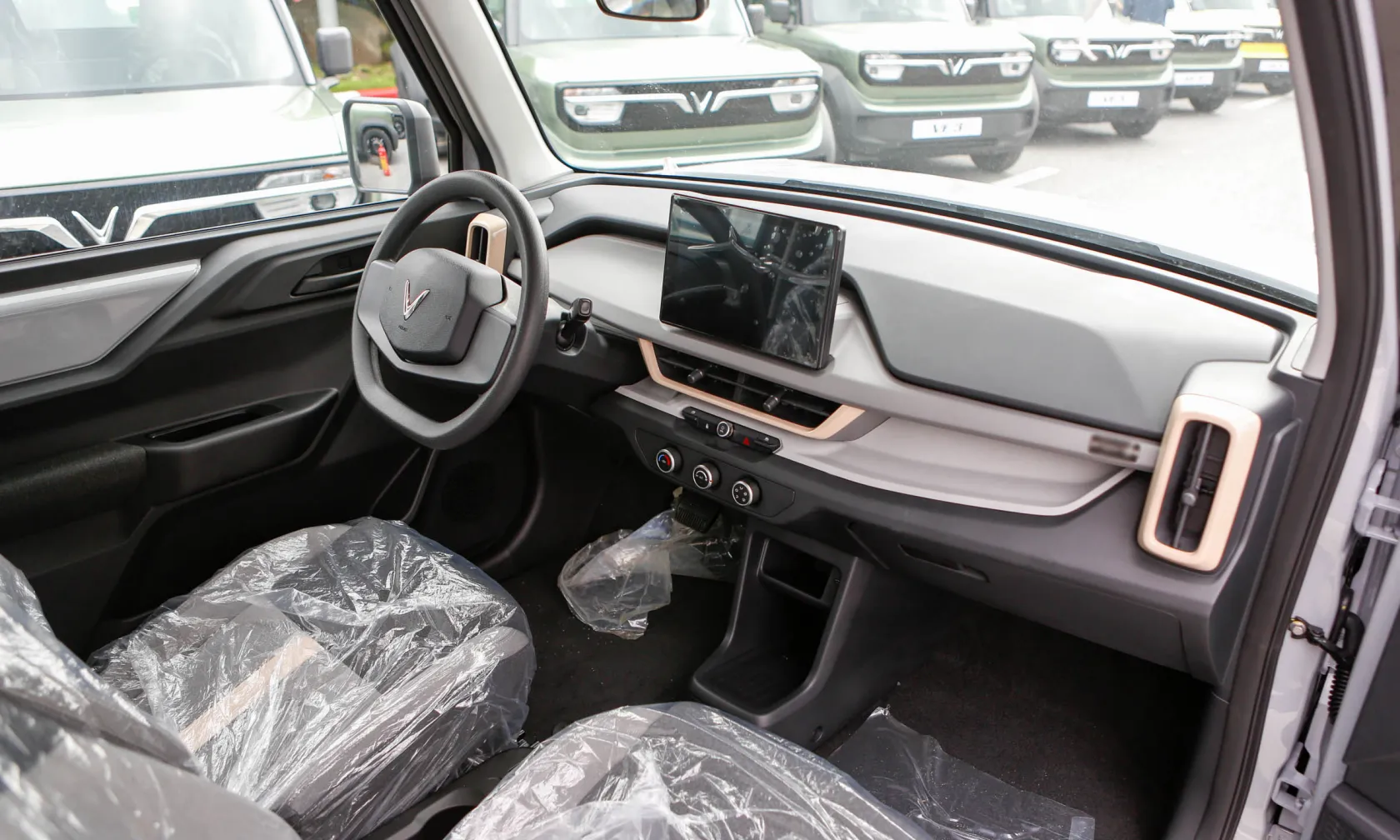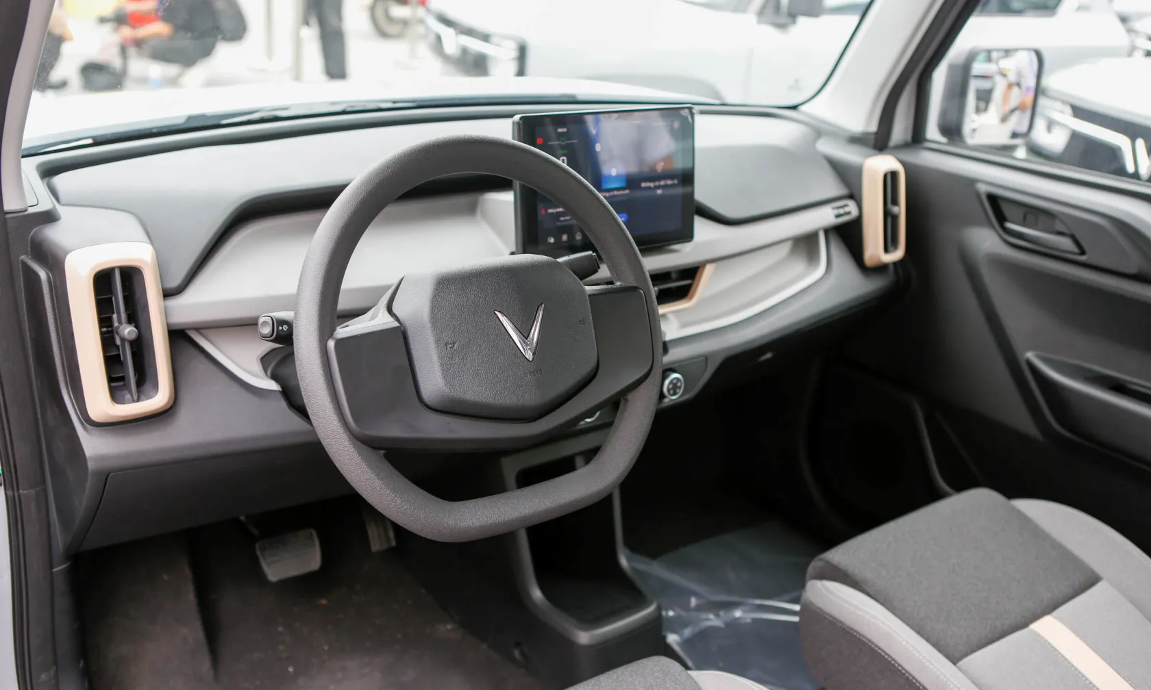 Khoang nội thất VinFast VF3 được phát triển theo triết lý tối giản song hiện đại và có phần cá tính với các chi tiết hình học như cửa gió điều hòa hai bên bảng táp-lô, vô-lăng D-cut 2 chấu... Điểm nhấn bên trong khoang lái VF3 là màn hình trung tâm 10 inch, nơi thực hiện thao tác các tính năng trên xe.